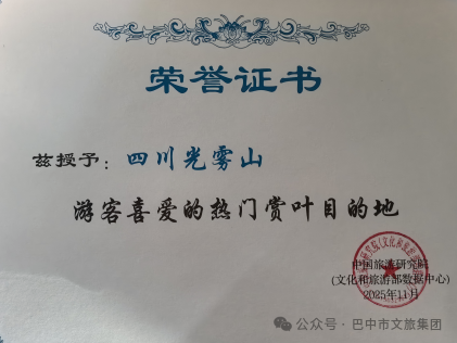 喜报!光雾山景区获评“2025年川渝体育旅游精品景区”