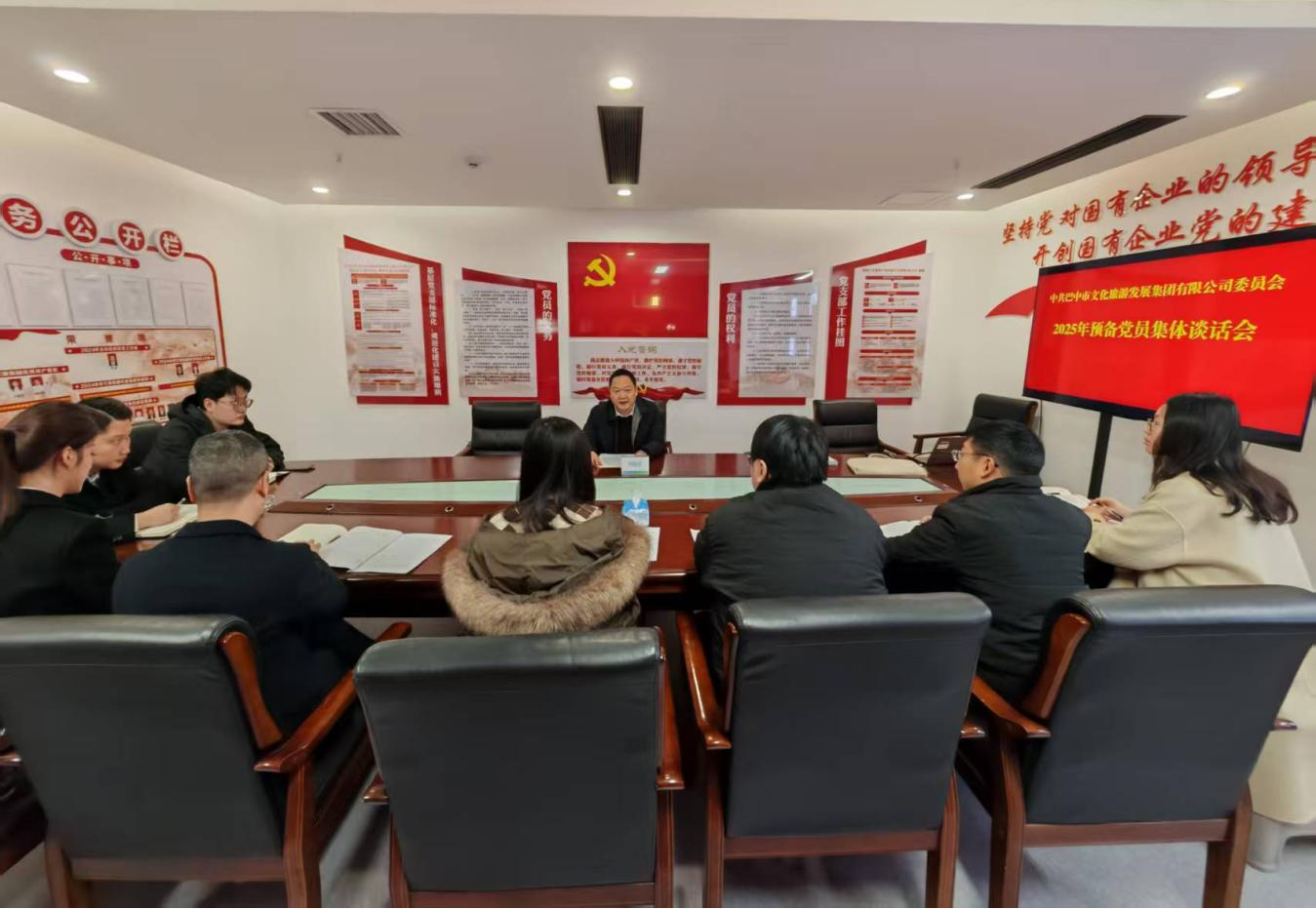1月15日,市文旅集团党委组织召开2025年度新接收预备党员集体谈话会。集团党委专职副书记、工会主席肖双平受党委书记、董事长吴学毅委托,与全体新接收预备党员进行集体谈话。 会议首先组织观看了党性教育专题片《功勋闪耀:“焊花”映初心》,通过...