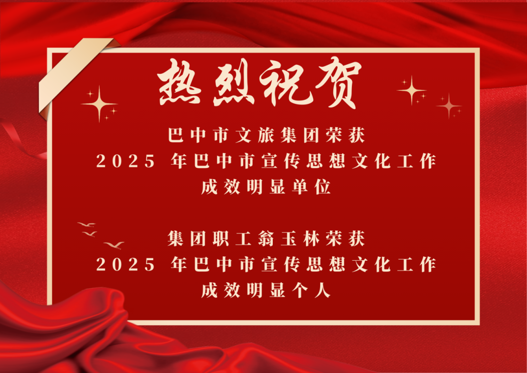 祝贺!巴中市文旅集团及职工翁玉林荣获全市宣传思想文化工作通报表扬
