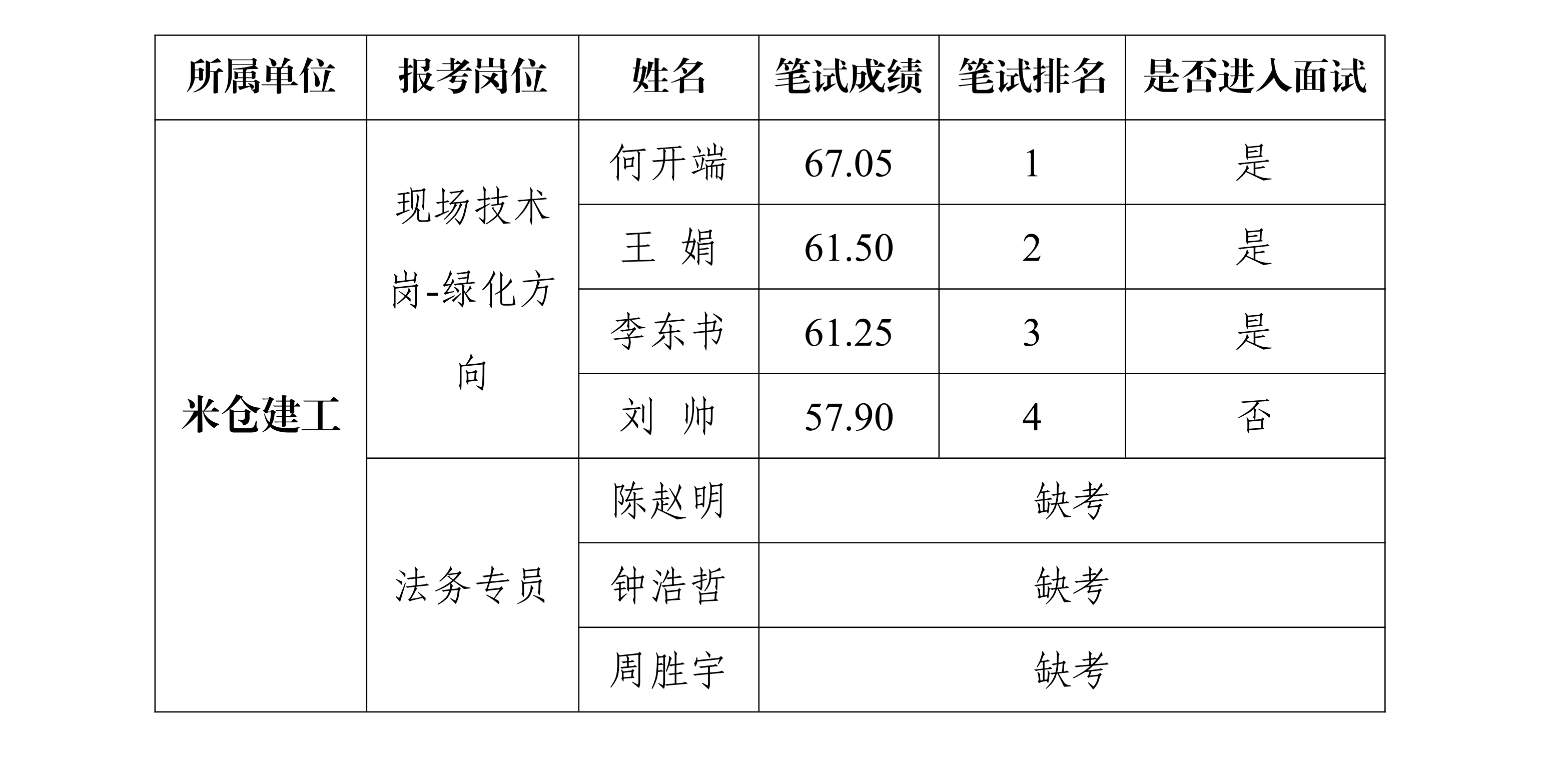 详见附件《四川米仓山建设工程有限公司2026年度公开招聘笔试成绩表》。
